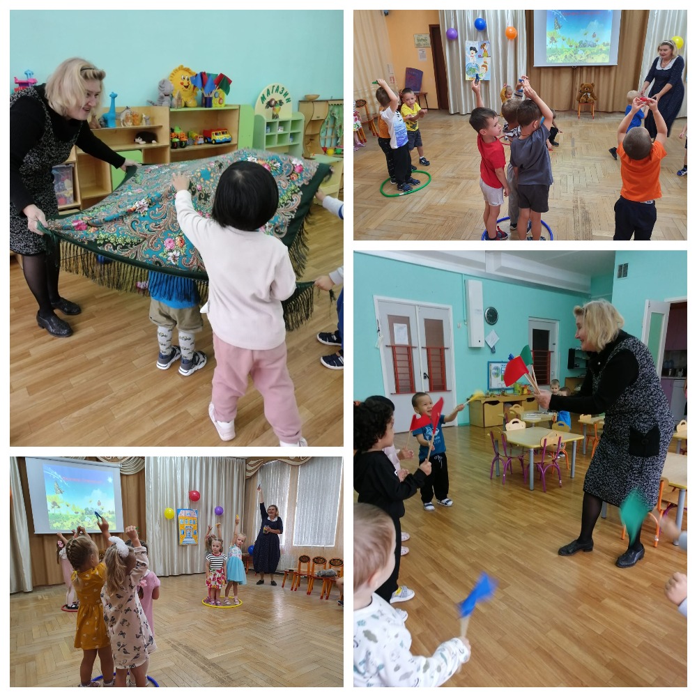 Главная задача педагога- психолога детского сада в начале учебного года - помочь нашим самым маленьким ребятам как можно быстрее и безболезненно освоиться в новой жизненной ситуации. А этому способствуют веселые игры "Волшебный платок", "Цветные флажки"," "Вместе в одном кругу" и многие другие.