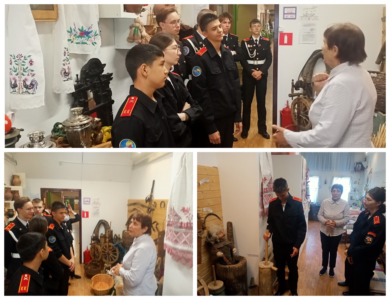 Прошел классный час кадетского класса в музее школы. Ребята окунулись в быт казачьей станицы. Послушали интересный рассказ зав. Музеем Поликашиной Л.П.