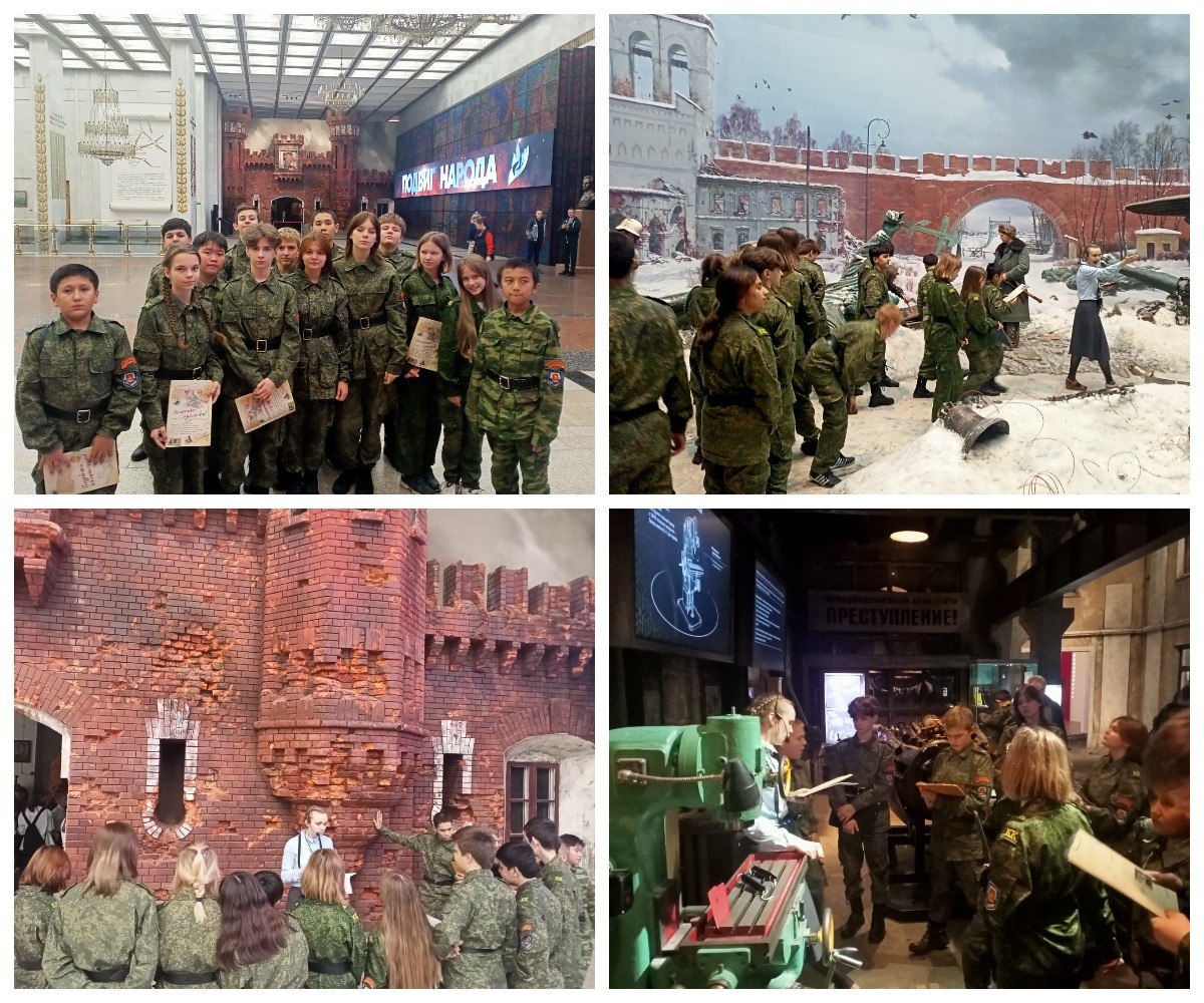 14 октября кадеты 7 класса посетили «Музей Победы», где приняли участие в общеобразовательном проекте «Историческое путешествие» по проекту «Кадетский класс в московской школе». Опытный экскурсовод провел ребят по залам музея. Ребятам были представлены экспозиции «Защитники Брестской крепости», «Оккупация», « Эвакуация» и другие. Во время рассказа экскурсовода, ребята отвечали на вопросы выданного задания. Помимо рассказа, кадеты увидели « сцены военного» времени, искусно изготовленные мастерами, максимально приближенными к реальности. Увиденное и услышанное произвело на ребят впечатление «личного посещения того времени».