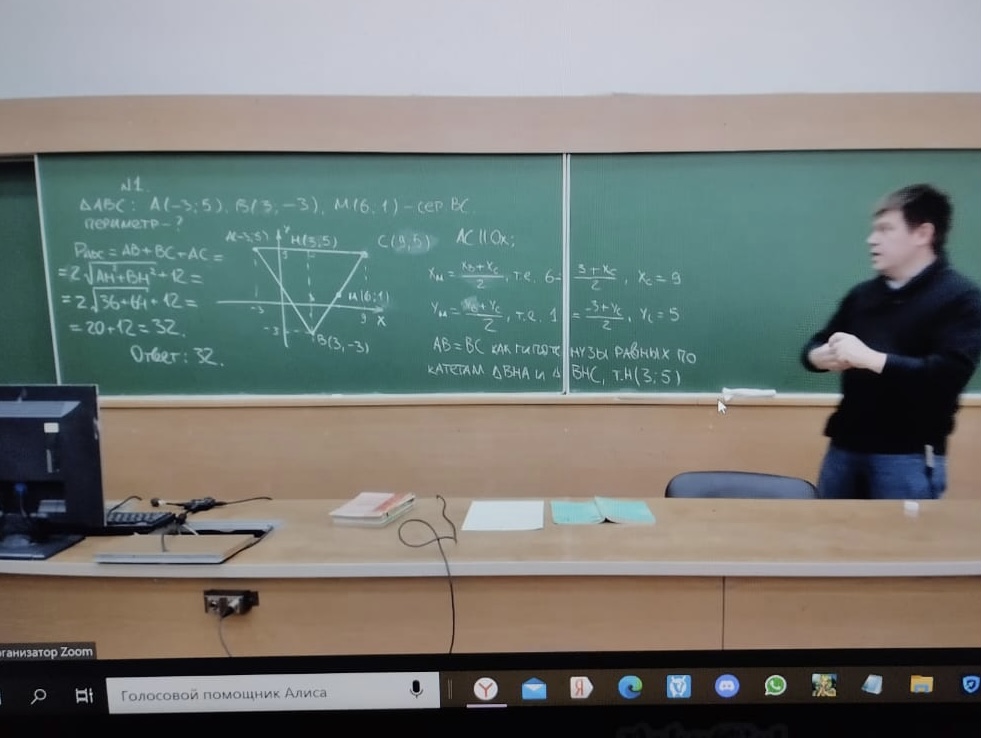 Наши будущие инженеры вместе с лекторами МГУ им.Ломоносова разбирали задачи подобного рода в планиметрии. При их решении часто возникают сложности с рассуждениями в многошаговых заданиях, где требуется построить связную схему рассуждений, последовательно применяя необходимые утверждения для исследования предлагаемой модели.
