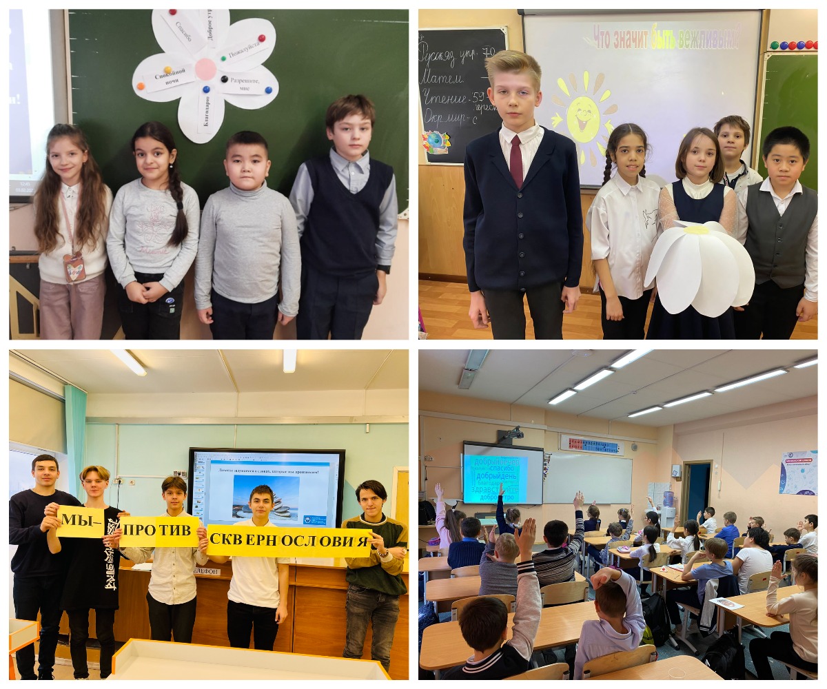 С учащимися начальной школы проведена беседа на тему «Урок вежливости». Одна из задач проведения беседы состояла в том, чтобы дети были доброжелательными в отношении друг друга и ко всем окружающим людям и готовым прийти на помощь. В ходе профилактического занятия ребята вырастили не простой цветок, а волшебный, из вежливых слов. И, чтобы этот цветок никогда не завял, они решили говорить только ласковые, добрые слова друг другу.