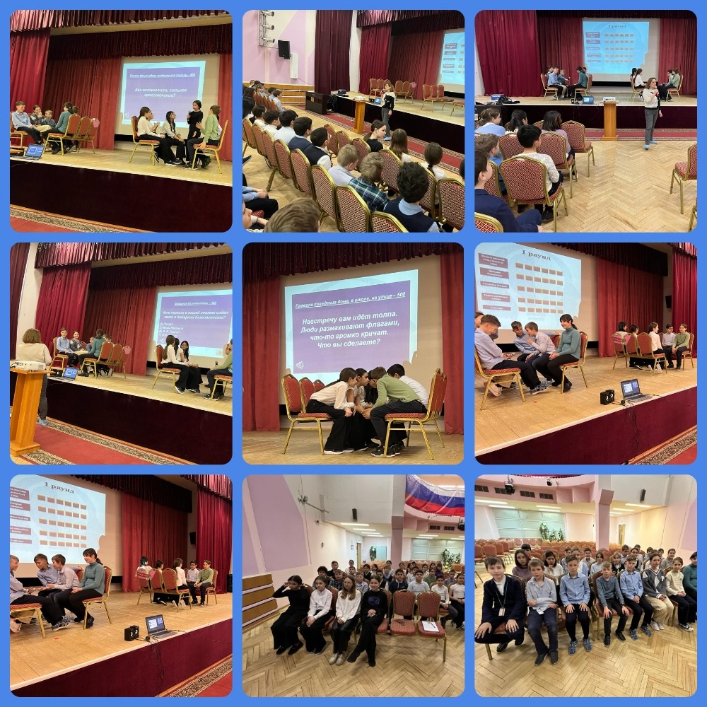 Представитель Экспертно-консультативного совета родительской общественности при ДОНМ провели для обучающихся 5-х классов СП «Новороссийский» брейн-ринг «Азбука безопасного поведения». В процессе игры были закреплены знания обучающихся о правилах поведения дома, в школе и на улице, о пожарной безопасности, об оказании первой доврачебной помощи и правилах поведения вовремя стихийных бедствий.