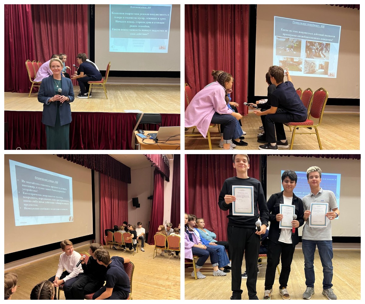 В СП «Новороссийский» прошел Брейн-ринг на тему: «Ты и общество», который проводили специалисты Городского экспертно-консультативного совета родительской общественности при Департаменте образования и науки города Москвы. В игре приняли участие 3 команды из 8-х классов. В процессе игры обучающихся повторили правила поведения в общественных местах, как вести себя на улице, ребята решали задачи, искали ответы на сложные вопросы, а также разрабатывали алгоритм действий в смоделированных жизненных ситуациях.