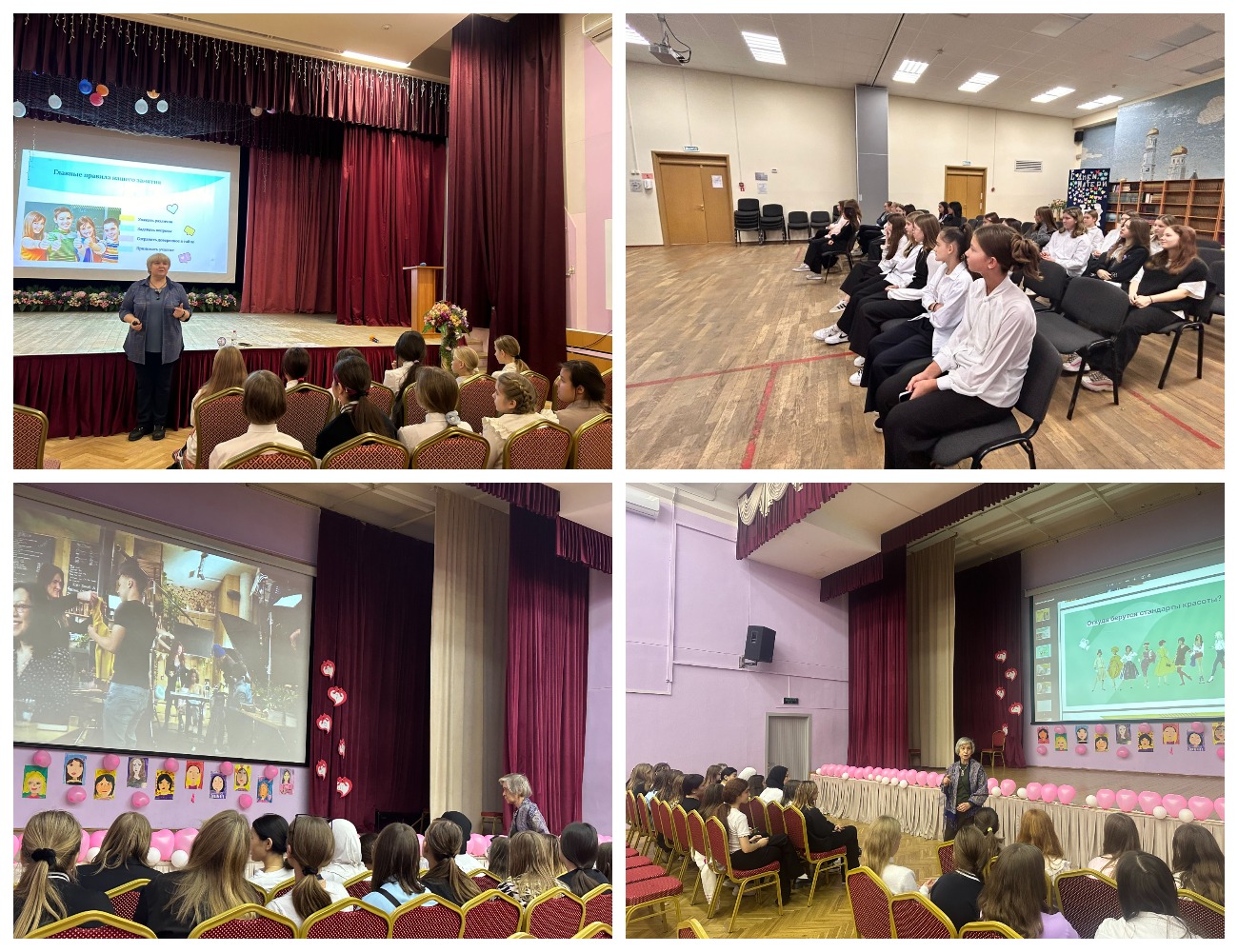 В рамках недели профилактики «Здоровая семья» представитель НИИ гигиены и охраны здоровья детей и подростков провела лекцию для учащихся 6-7-х классов всех структурных подразделений на тему «Уверенность в себе». Цель мероприятия: формирование у обучающихся уверенности в себе, разрушение негативных стереотипов, распространенных в молодежных СМИ, а также создание благоприятного психоэмоционального состояния и позитивного отношения к жизни.