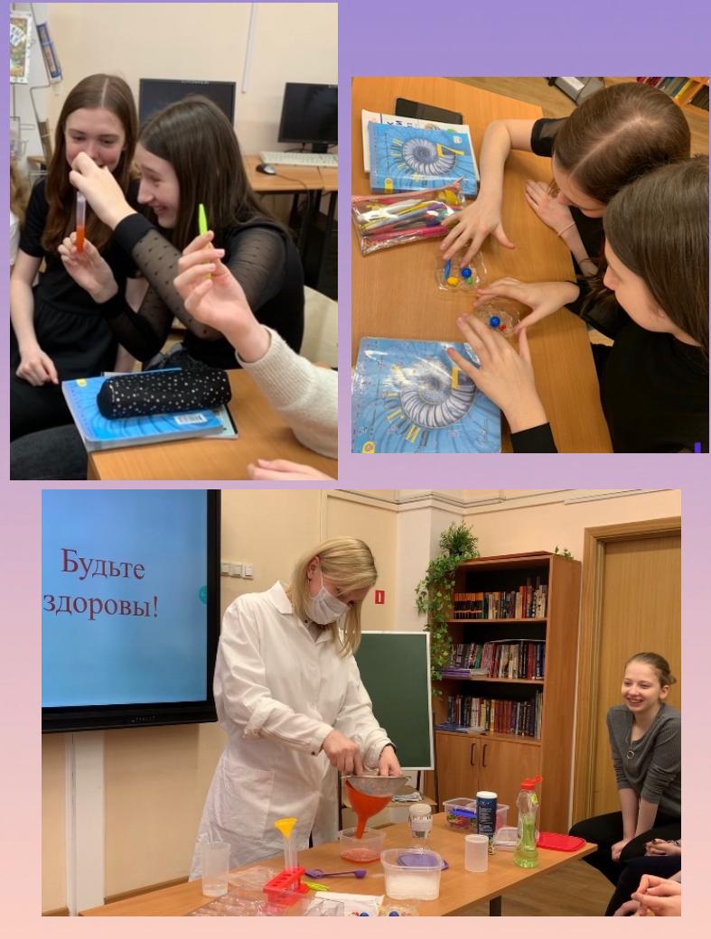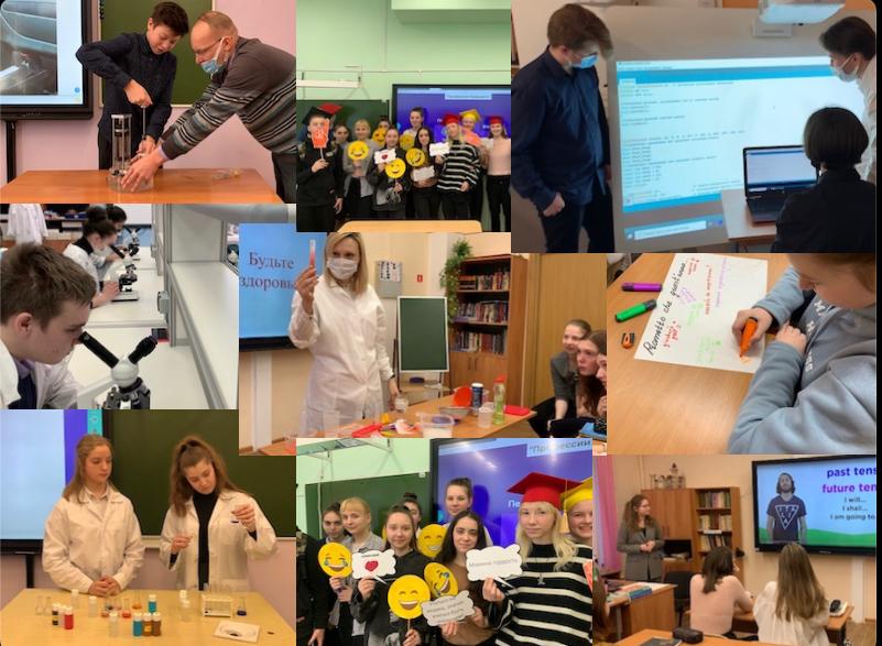 Учителя провели познавательные мастер-классы: «Выявление ДНК клубники с помощью химических опытов», «Изучение строения клеток животных и растений с помощью интерактивного макета» , «Качественные реакции в неорганической химии», «Профессия инженер: настоящее и будущее», «Гидравлический пресс. Опыты с атмосферным давлением», "Английский язык открывает горизонты к будущей профессии". Ребята познакомились с особенностями профильного обучения. Поучаствовали в квизах по профессиям будущего.