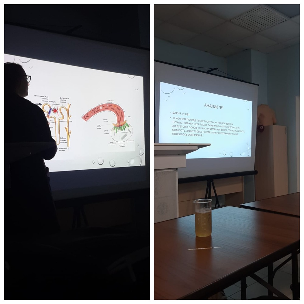 На лекции ребята познакомились с особенностями строения почек, а также профилактикой и лечением некоторых болезней мочевыделительной системы. В практической части ребята узнали, как определяются вещества через тест-системы.