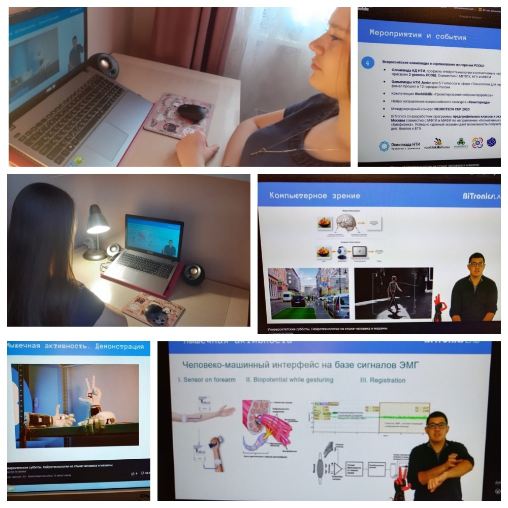 В рамках мероприятия "Субботы московского школьника" ученики 8-А класса посетили вебинар "Нейротехнологии на стыке человека и машины". Речь шла о том, что современный мир становится невероятно технологичным и для человека открываются новые возможности. Нейротехнологии - это совокупность технологий, благодаря которым создаются интерфейсы человеко-машинного взаимодействия на основе биофизических эффектов. Харизматичный спикер, очень много новой и интересной информации, и еще один вариант для будущей профессии.